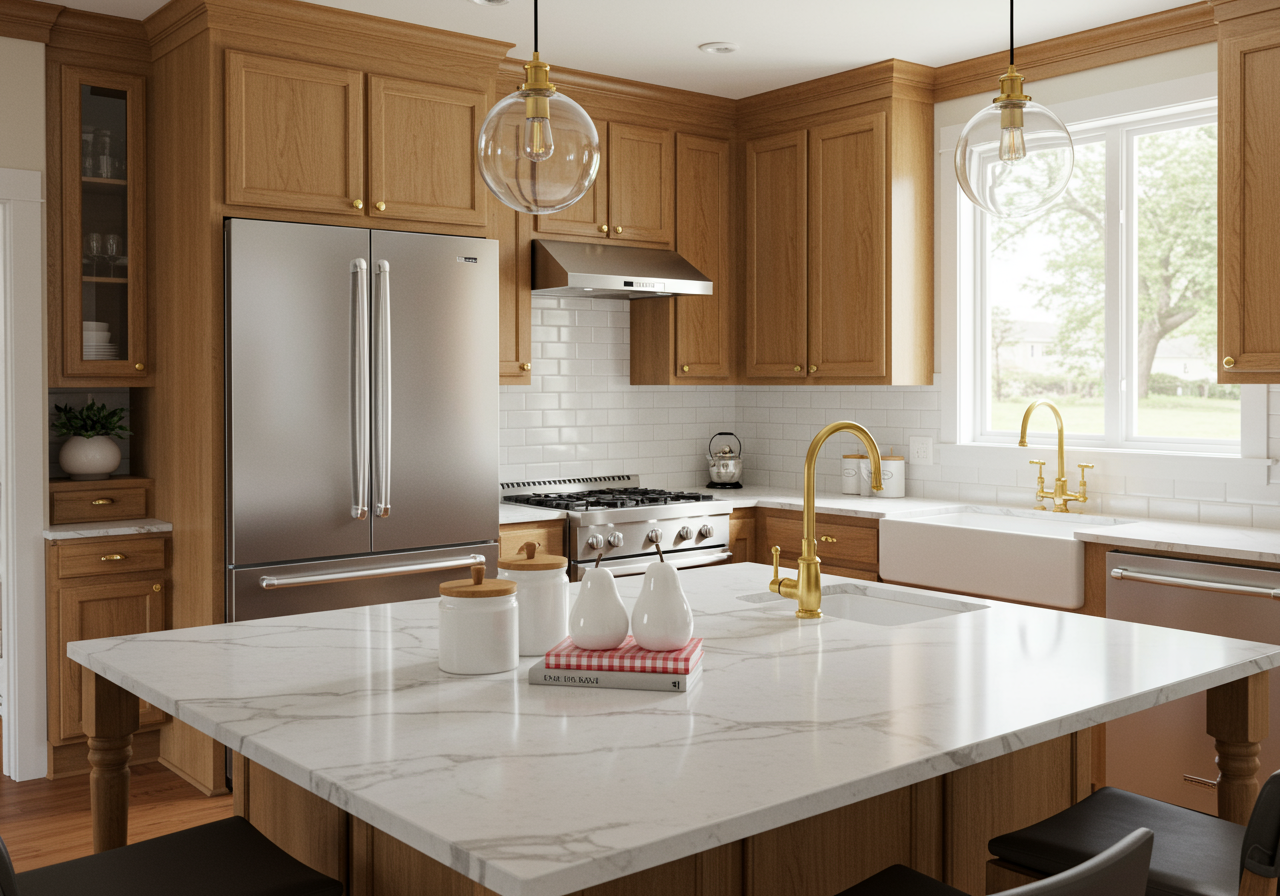 Gatherings now flow effortlessly in a space designed for connection and culinary delight in the reimagined social kitchen. An expansive 11-foot opening made way for a generous 5-foot island, which serves as the focal point for shared moments and culinary creations. With fresh countertops and a stylish backsplash, this kitchen is poised to inspire and impress.