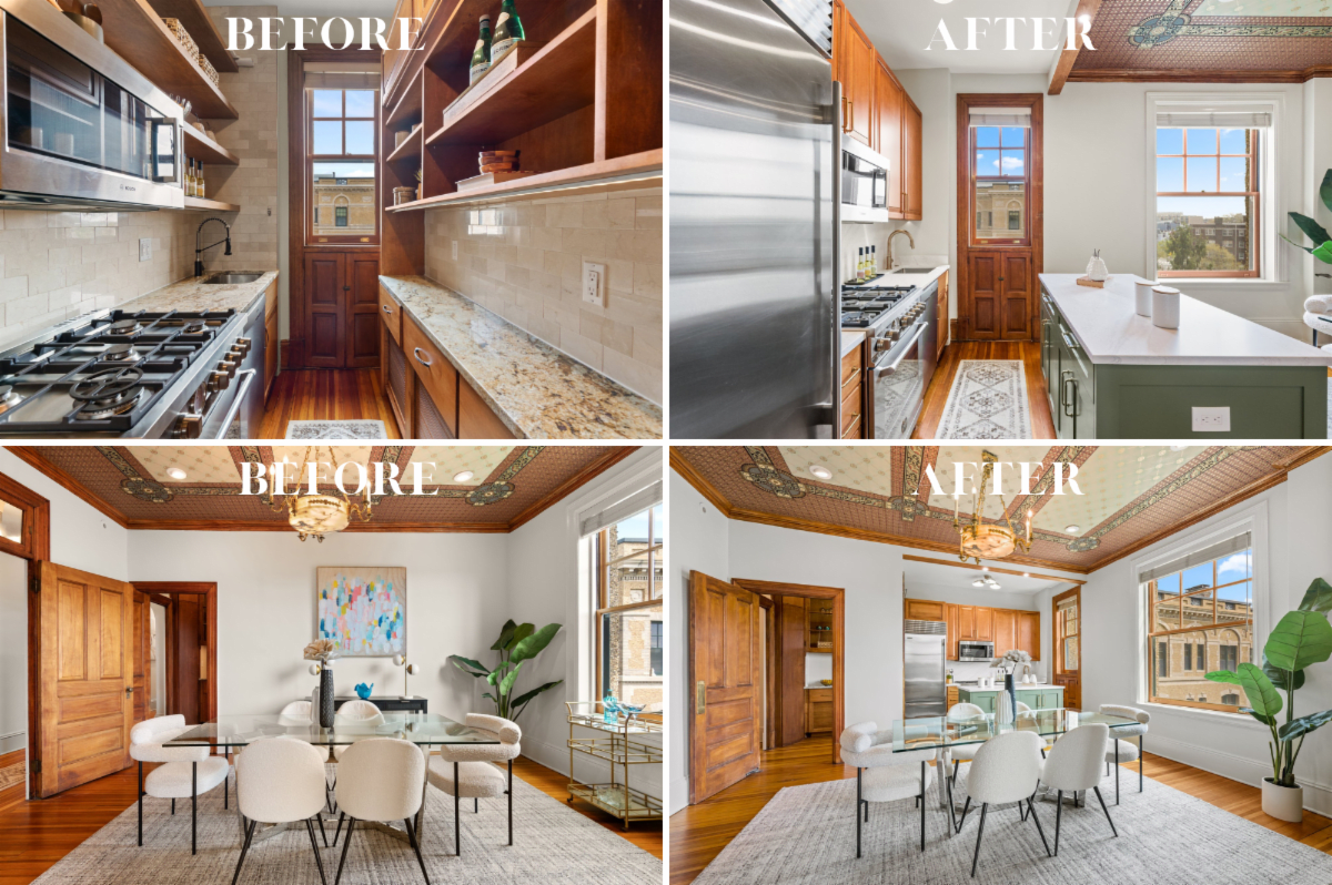 When we listed the apartment in the fall, the one thing my client had not undertaken was the integration of the closed galley kitchen into the other public spaces. After carefully parsing through and absorbing feedback from potential buyers, we worked together over the last season to cater to this widely held desire, achieving mass appeal.